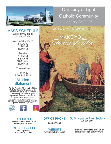 just reach out to the Parish Office. (239) 267-7088